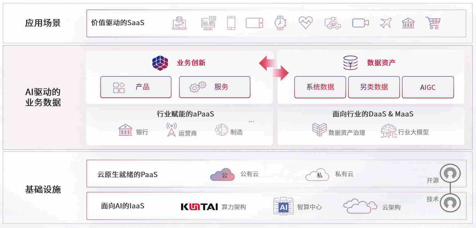 数字时代,,围绕企业数字化转型的关键要素,,,尊龙旗舰厅数码开创性的提出数云融合战略和技术体系框架,,,着力在云原生、、、、数字原生、、、AI原生和信创产业上架构产品和服务能力,,,,为处在不同数字化转型阶段的快消零售、、汽车、、、金融、、医疗、、、政企、、、、教育、、、运营商等行业客户提供泛在的敏捷IT能力和融合的数据驱动能力,,构建跨界融合创新的数字业务场景和新业务模式,,,助力企业级客户建立面向未来的核心能力和竞争优势,,,全面推动社会的数字化、、、智能化转型升级。。。