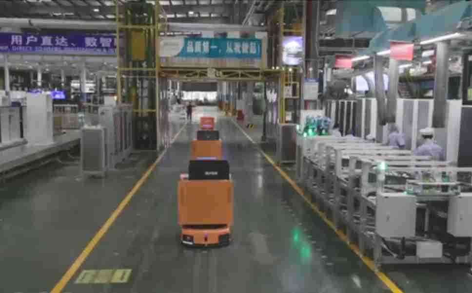 为车载冰箱物流配送打造的智能解决方案,,,,包含产中物流通过潜伏举升AMR搬运至线边,,,产后成品物流智能仓储,,,流程包含产中物流智能齐套入库,,,线边安灯叫料AMR智能配送至线边,,成品入库、、、出库,,通过无人堆高车机器人,,,智能仓储管理替代人工作业管理,,,,实现更高存储、、更高效率、、、、更具柔性化的解决方案。。。。